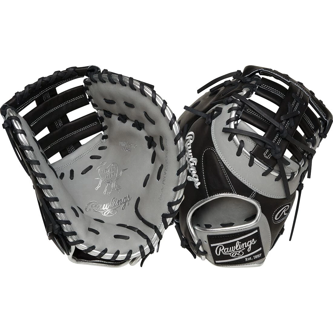 The freshest gloves in the game are here: It’s the 2023 Rawlings ColorSync 7.0 Heart of the Hide series! This 13-inch first base mitt comes in a cool and confident black-and-gray colorway that stands apart from the crowd.